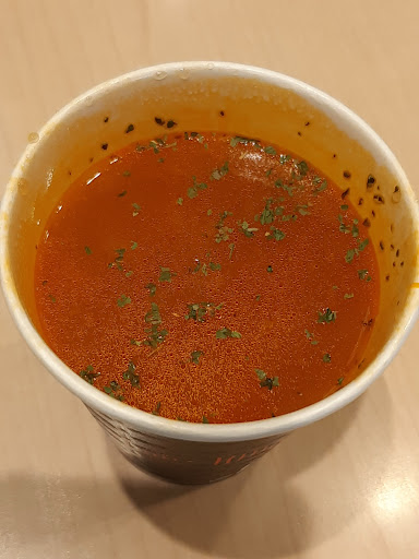 「ミネストローネ」380円 サイズは2展開。 小さい方にしました。 そこそこ熱く具材も割としっかりしてます。 ちょっと小腹が…というタイミングでは最適解に近いです。