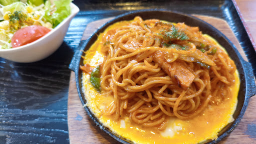 カフェ木木のメニューには、ビーフカレーや焼きチーズカレー、鉄板イタリアンスパゲティなどの食事メニューがあり、ドリンクメニューも豊富です。また、店内は禁煙で、駐車場も完備されています1。