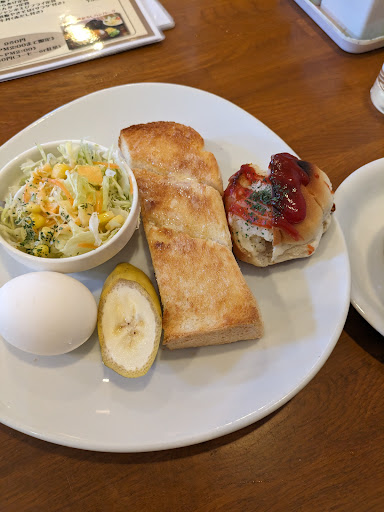 Cafe木木さん(きもく) 岐阜県羽島郡笠松町門間2561−1 営業時間□9時〜17時 定休日□木曜日 駐車場🅿15台 笠松町で良いモーニングが頂けると聞いてお邪魔♪ 外観は白と木材を使用したCafe 内装もシンプルな木材使用した落ち着いた雰囲気のお店です! 2人掛けテーブル8セット、4人掛けテーブル2セット、カウンター席に3席 人気店なのでしょうね~オープンして20分で満席〜 モーニングはドリンク代のみと朝定食とフルーツサンドをチョイスできるモーニングの3種 朝定食も…気になりましたが〜先ずは!珈琲飲みたいので、ノーマルのモーニングをブレンド珈琲で注文❣ 七分ほどで提供されたモーニングは 珈琲、バタートースト、ポテサラドック、サラダ、ゆで卵、カットバナナ! この内容で〜ドリンク代のみ450円♪ 珈琲はストロングタイプ♪カップも〜熱々で提供されるので〜ご注意❣ トーストはホテルトースト並みのさくふわ♪ ポテサラドックも〜なかなか良いお味ですね~♪サラダも作り置きでは無い感じ!なかなか上質のモーニングですね👍 隣の方が〜「朝定食」頼まれてましたが~そちらは焼いた鮭とお味噌と卵ご飯❢ ドリンクが付かないけど〜あの内容で600円❣なかなかのボリューミーでした♪ 次回は〜朝定食頼んでみたいですね~ 美味し~モーニン...