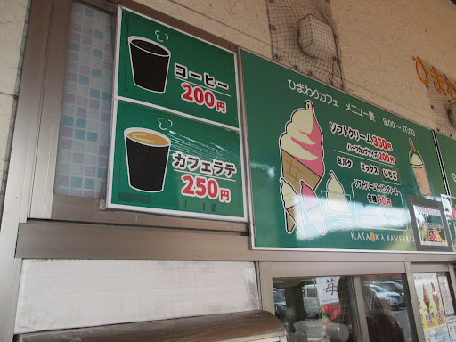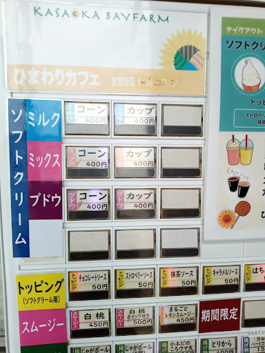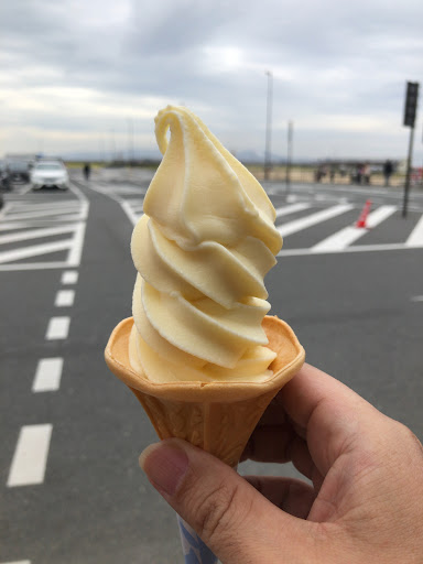 道の駅の外にカフェがあり、券売機で買った券を隣の受付けに渡してできたら呼ばれて受け取ります。 ミックスソフトはミルク、ブドウとも甘さスッキリで美味しかった。 魚々棒は魚の練りものを串刺しで揚げてあり、魚のクセはなくあっさりしてて美味しかった。 他にもじゃがボールなど個性的な惣菜がたくさんあるので、リピート...