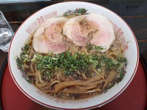 Read more開店間際にお邪魔しました。 ドアを開けても席に着いても小母ちゃんは下を向いたまま気付かない。 ようやく空のコップ(お冷やはテーブルの上に有りました)を持ってくるも「いらっしゃいませ」の一言もない。 中華そば 笠岡(醤油)を頼む。 10分弱でラーメン到着。 これが噂の笠岡ラーメン。 なるほど。 鶏肉だな。 まずはスープ。 奥行き皆無のショッパイだけの汁。 これは失敗したかな? 続いて麺。 少し柔らかいがまあなんとか食べれないこともない。 お待ちかねの鶏肉。 何だこれは? 味付けがくどいのはこの際脇に置いておいて食感。 シワイのか歯応えがいいのか判断に困る微妙なライン。 そして何よりラブコメアニメの料理下手ヒロインが切ったような無様な連なり切り。 目の前の壁に有るコンセントは塵をたたえた蜘蛛の巣。 食後小母ちゃんには「美味しかった」と心にもないおべんちゃらを言って店を出ました...