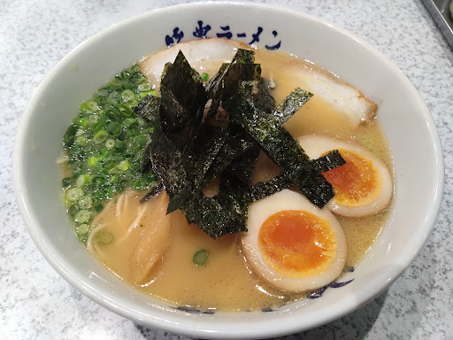 二度目の来店です。 8月の末に九州へ行った際、幹線道路沿いで山小屋ラーメンをたくさん目にしました。 さすが発祥の地ですね。 岡山県では笠岡店を含め 4店舗が営業しているようです。 山小屋さんは他のラーメン屋さんと比べ全般的に価格が幾分高めです。 替え玉はなんと¥250もするんですね~。 もう少し安価だと通いやすいのですが…(^_^;) 席に座るとスタッフの方がお冷やとピッチャーを持ってきてくれます。 今回はお店の名前を冠した山小屋ラーメンをいただきました。 スープの味は少し薄めですね。 細麺は普通でした。 具はチャーシュー 2枚と葱、メンマ、もやしがのっていましたがメンマはもっと歯応えが欲しかったです。 もやしは無くてもいいかも。 もやし自体が水分量の多い食材のため、もともと薄めのスープと一緒に口に含むと味が余計に薄まってしまう感じがしました。 2枚のチャーシューは美味しかったです。 卓上の胡麻を擦って振り掛けるとより美味しくなりますよ。...