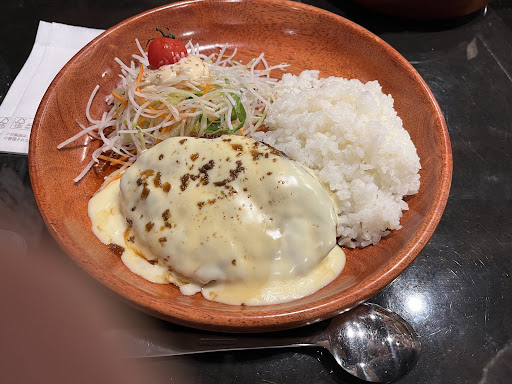 本題のパイナップルカレーディッシュが到着しました。王道のチーズや目玉焼きより美味い訳ないと思っましたが、これは美味しい! パイナップルの爽やかな甘酸っぱさがハンバーグの肉汁と旨味がバッチリ合います。 王道トッピングとは方向性が全然違うのでコレは好きな人がいるのは分かりますね!