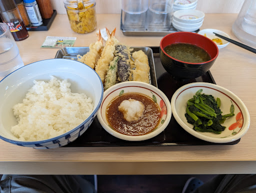 Read more追記 いつものように天丼食べに行って、 食券買って席に座ってたが、いつまで経っても店員さんが食券を取りに来ない。 私の後から来たお客さんの食券はどんどん回収していったので、忘れられてると思って店員さんに声をかけたところ、「食券の時刻順で作ってるので順番通りに来ますよ」とのことだったが 普通に後から来たお客さんの方が先に提供されていて気分が悪かった。 なのでサービスの評価を下げました。 天丼のチェーン店です ワンコインで天丼が食べれます 今回は海鮮づくし天丼...
