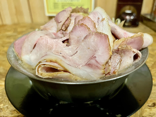 極めつけに、このために残しておいた「アブラ」もダイブさせ、ニンニクもプラスすると、究極の背徳飯ここに極まる。全力でかきこむ‼️