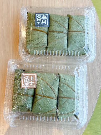軽食用に柿の葉寿司を購入します。3つという個数がちょうどよく、鯖と鮭を1セットずつ購入します。