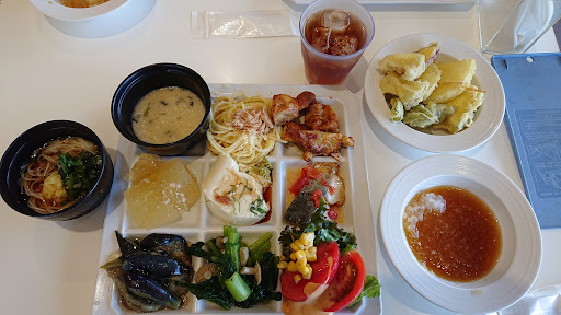 地元産の食材&旬の食材を使用した 野菜サラダや各種お惣菜、手作り豆腐、ちらし寿司、揚げ物(各種野菜天ぷら.メンチカツ)、ジャーマンポテト、三輪素麺、牛すじカレー、白身魚のアクアパッツァ、汁物、ピザ、季節のフルーツ、ケーキ、和菓子、ドリンクバー、ソフトクリームバー・・・などなど♪♪♪ 美味しかったです☆☆☆☆ また、お料理が無くなると...