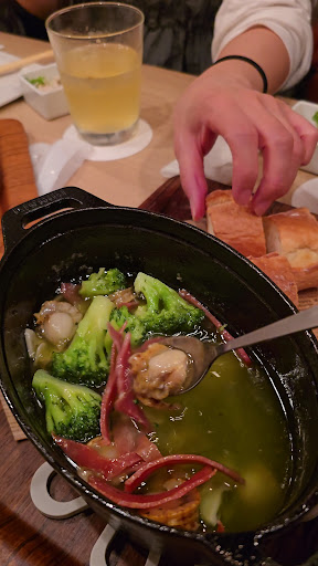 さて、ajitoのコンセプトとして大人の隠れ家というだけあって、一見壁に見える場所が出入り口なのは、おしゃれなのですが かがまないと入れないのは、機能面として改善の余地があると思います。腰があまり良くない人間としては辛いですし、酔っ払って顔を打つなどの事故が起こるかもしれません。 また、席がカウンター、小上がり、夜景が見えるテーブル、カーテンで仕切られたテーブルなど、いくつかあり、今回は半個室にっているカーテンで仕切られたテーブルにしました。 近くにあるKICHIRIではコールボタンがなく、店員を呼ぶ際に手や声を上げる必要がありましたが、この店舗ではボタンひとつで来ていただけます。 日曜で多忙だったにも関わらず、料理は暖かでドリンクも比較的早く提供されました。