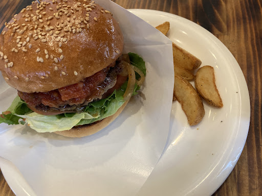 この日はベーコンチーズバーガーでアボカドトッピングとマンゴージュースを注文。 ここのハンバーガーは肉が旨味があって美味しいと思います。 ベーコンも分厚く、パティも旨味があり、総合的に食べ応えのあるハンバーガーで美味しくて満足です。肉肉しいハンバーガーが食べたい人はトマト抜きって店員さんに伝えればトマト抜けます。 特に個人的にベーコンチーズバーガーがオススメ!!アボカドはどっちでもいいかと思います。 良ければ食べてみて下さい。 敢えて肉にアクセント付けてるのでしょうか? 個人的に肉のアクセント無くてもいいと思います。 ポテトは2年前頃は皮付きナチュラルポテトだったのですが、最近行ってきたらギザギザポテトでした。個人的には前に出してた皮付きナチュラルポテトが好みでした。そこは残念です。 あとマンゴージュースはトロトロ濃厚で美味しいのでいつもマンゴージュース一択です。 マンゴージュースが苦手な人は炭酸系や他のフルーツジュースも...