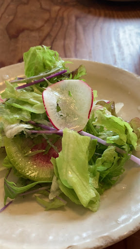 まずはサラダから!色々お野菜が入っていて美味しかったです! そしてパンも出てきました! 温め直してくださったみたいでした!!