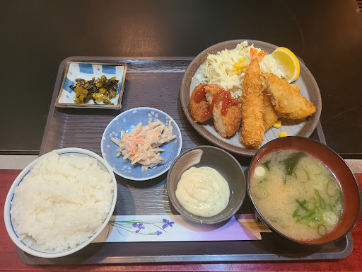 迷った挙げ句、ミックスフライ定食を注文。 メインのおかずはコロッケに白身魚フライ、エビフライ🍤でした。タルタルソースをたっぷり付けて頂きました✨ 小鉢も付いて700円‼️ 大満足な晩御飯になりました🎵