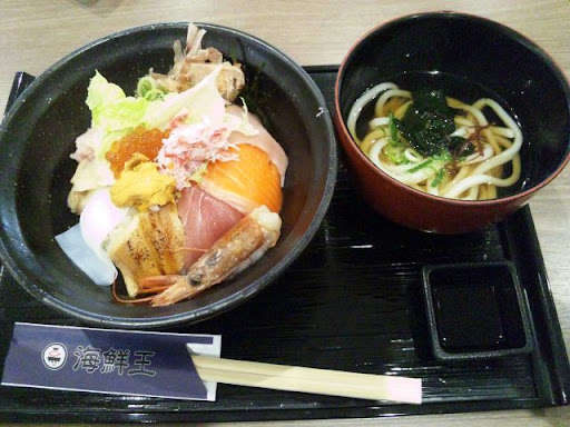 フードコートの海鮮丼のお店。 貝は硬め、イカは切ってなくて大きく、お年寄りは苦労しそう。 千円ちょい払うなら、他でもうちょいイイもの食べられるかな。 海鮮丼専門店という事で、寿司飯だと思い込んでたら、普通の白飯だった(しかも、私の苦手な軟らかめ・・・)。