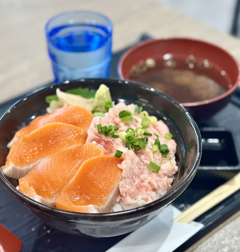サーモンねぎとろ丼980円を注文しました。 ごはん大盛り無料とのコト。酢飯でした。 まあ普通でした。 赤だしがついてきますが、これは微妙… やる気ない汁モノなら最初から要らないと思います。 が、しょうゆが濃いめなのは良かったです。