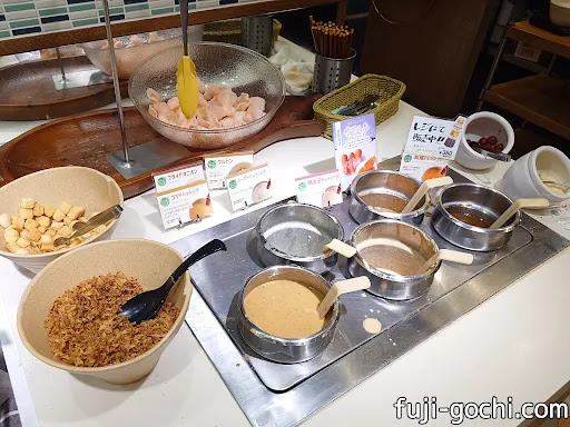 ใใใชใตใฉใใใผใฎๅๆใใฏ็้่ใๆฃ่ใๆ็ฉใ็ๅณใไธฆใใงใใใใใฌใใทใณใฐใฏ5็จฎ้กใใตใฉใใฎไธปๅฝนใฌใฟในใใกใใฃใจๅคใใฃใๅ็จฎใงใๆญฏใใใใฏ่ฏใใใกใใฃใจใฏใปใฎใใๅณใใตใคใใฎใฌใฟในใ้ฃในใใใใพใๆฃ่ใๅคงไบบๅใใงๅญไพใใฏ้ขๅฟใ็คบใใชใใ