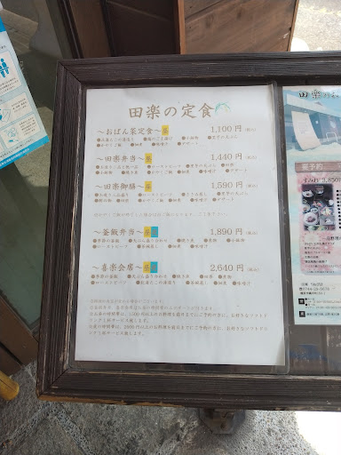 2023/08/27訪問。田楽御膳¥1,690-をいただきました。ランチはやはりお値打ちですね。酢の物はタコの薄造りやわかめなどの海藻などを泡というかムースというかな状態のお酢でいただくという珍しいもの。お造りもマグロ、鯛、湯葉の三種で湯葉嬉しいですね。ササミも下味しっかりしていて、上品な胡麻ダレと合います。里芋のてんぷらは田楽さんでしか味わえないですねー。蓮根一つと里芋二つでしたが、どちらもサクッとしてほのかに甘く絶品でした。里芋一つは海苔を巻いていてもう一つは何か分からなかったです。写真忘れましたが、デザートに抹茶プリンいただきました。最初に冷たいお茶と冷たいおしぼりで、後は温かいお茶と温かいおしぼりを出して下さったりとサービスも心配りが利いていて嬉しいので大和八木に来るとつい田楽さんにお邪魔します。ごちそうさまでした。 2021/07/25訪問。田楽弁当¥1,440-をいただきました。非常にお値打ちです。最初に冷たいおしぼりとお茶。暑さにやられている身が生き返ります。それほど待たずにお弁当到着。二段になっているお弁当箱を開けると、はまちとサーモンのお造りに煮こごり、佃煮、鰆の西京焼き、豆腐田楽、小鉢のお野菜(多分ズッキーニの酢の物?)、ローストビーフ、里芋の天ぷらと少しづつですがどれも美味。特に美味しかったのは鰆の西京焼きと里芋の天ぷらで、骨がなく皮まで全部いただいた魚も美味でしたが、天ぷらは外側さくっと中はしっとり自然な甘みで他では食べたことない美味しさでした。かやくご飯とお味噌汁もついていてご飯お替わり可。デザートはこの日はプリンで黒蜜、抹茶、コーヒーから選べるとのことで抹茶いただきましたが、甘過ぎないでも濃厚な美味しさで味、値段、量と全て満...