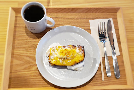 そしてもう一品。『焼きバナナのパンベルデュ』です。こちらはしっとりしたフレンチトーストでホイップをサンドし、こんがり程よく焼いたバナナが天面に並びます。このホイップがヨーグルトの風味で、爽やかな酸味とキャラメリゼの苦味が絶妙に絡み合ってそれはもう。。大好きな逸品です笑。