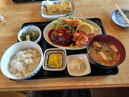Read more橿原神宮前駅から徒歩でも5分くらいで、駐車場もあります。 お料理は全て美味しく、お店の方も調理されている男性も、接客されている女性も優しい笑顔が素敵です。 今回わたしはハンバーグA定食を注文しましたが、ハンバーグはふんわりだけど、中までしっかり火が通っていて一切クセがなく、エビフライも唐揚げもサクサクのプリプリで、全てが美味しいと思いました。 デミグラスソースやタルタルソースもまろやかで、料理の味をさらに引き立てるような存在です。 小鉢やお味噌汁はどこか懐かしさも感じる優しい味付けです。 各種定食の他に、丼ものや麺類など、メニューが豊富です。 営業時間が11時から14時で、以前12時過ぎに行ったときは駐車場もいっぱいで、お店の外で待っている人もいて断念したので、今回はオープンを待って行きました。 テーブル席とカウンター席もあるので、1人で...