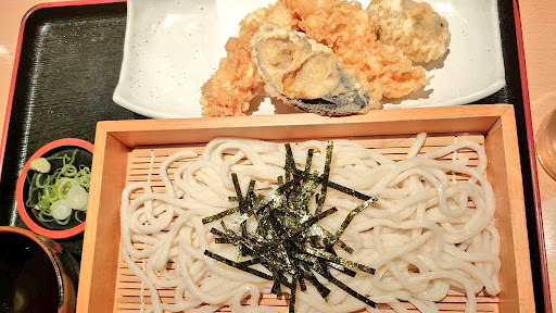 今回は、久しぶりのリピートですが、アジフライ&カキフライ定食(もりそば付)にしました。 アジフライは、ん?半干物をフライにしたのか、少し塩の味が感じられました。 カキフライは、ジューシーと言えば良いのか、牡蠣のジュースが滴ります。 しかし、季節柄なのか牡蠣の味が濃くはありませんでした。