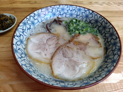 Read moreユーチューブや会社の同僚から、鹿島に朝ラーが頂ける店が開店したという情報を入れて伊万里から訪問。 実際に来てみると明らかに伊万里と吉野ヶ里にある、博多ラーメン店の”味納喜知”の関連ぽい店舗。 店内のL字型カウンターのレイアウトと、調味料の置き場配置も同じタイプ。ラーメンと焼き飯のビジュアルを見ても、共通点が多くてメニューの価格設定もほぼ同じ。 今回は初訪問で日曜日の開店直後の朝6時過ぎ頃に入店。既に2名ほどの先客。 早速、ラーメンを頂くと流石に元祖に当たる”味納喜知”のような強烈パンチ型な味わいではなく、あくまで朝から受けつけ易い味わいにアレンジがされている。”味納喜知”とは全くの別物。 見た目的には同じだけど、肝心の味はラーメンもチャーハンも玄人受けしそうな”味納喜知”とは差別化していた。 個人的には”味納喜知”の方が好みだけど、あそこのは朝から頂くには結構クドイ。 しかしコチラのはコレといった特徴が無く、ごく普通に平凡的な味わい。強いて言えば昭和時代に流行った、コンソメ味っぽいチャーハンの方が個性的かも。 正直、個人的には朝方以外だとリピはない。けど、それ以上に朝6時から開店してくれている事に、非常に重要な意味合いがある。それだけでも個人的評価は★5つ。 実際に日曜の朝6時過ぎの食事中にも、次々とお客さんが来店。 他店と競合する時間帯がズレている事で、早い時間帯は独占的に地域のニーズをしっ...