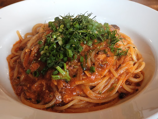 家族で再来。 しらすのマリナーラ ミートソーススパゲッティ 前菜 今日はお魚のブリとスモークチキンでした (メチャウマ) ミートソースは 独特のハーブの配合で好きな人は好きだろうが好みがわかれるところかもしれない。 伺ったらフェンネルとのことでフェンネルシードも見せて頂き有難うございます。 家族も大喜びのランチとなりました。