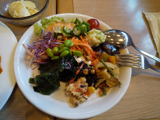 各コース共通の基本メニューは並べてある台からセルフで自由に取っていくスタイル。 「和洋中65種類以上が食べ放題」と宣伝している。 メイン料理は約20種類、サラダコーナーが17~18種類、デザートが約15種類が並んでいた。 利用日にはハワイアングルメフェアを実施しており、タコライスやアボカドサラダが並んでいた。