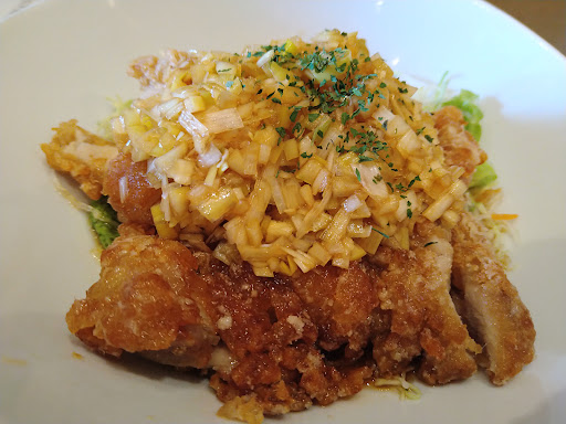まず、チャンチャンセットの内容が非常に充実していて、1260円という価格でこれだけの満足感を得られるのは驚きです。セットには、メイン料理を一品選ぶことができ、私はユーリンチーを選択しました。これが正解でした!ユーリンチーは外はカリッと、中はジューシーで、甘酸っぱいソースが絶妙に絡んでいて、非常に美味しかったです。また、ボリュームも満点で、食べ応えがありました。