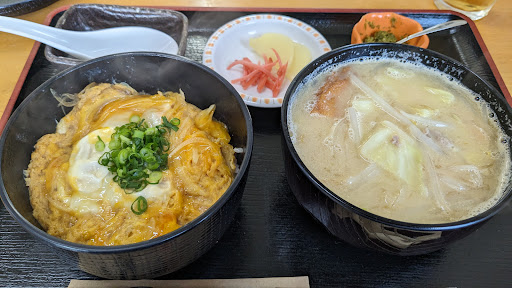 Read more食堂、という趣のあるお店で懐かしい雰囲気です ワンコインの豚汁玉子丼セットを玉子丼気持ち多め+50円で注文、豚骨風味の具沢山の豚汁は麺なしちゃんぽんのような雰囲気、味は濃くないのですがコクや味わいはあり染みる味です、野菜や練り物多めで嬉しいですね、玉子丼が甘辛いけどあんまりしつこくなくて丁度いい塩梅、この味なら確かにカツ丼とかエビ丼は相性抜群だと思うのでそれも食べてみたくなります お昼に食べるのに丁度いい量で味も良く安い、良い店ですね ただ食事のニオイ...