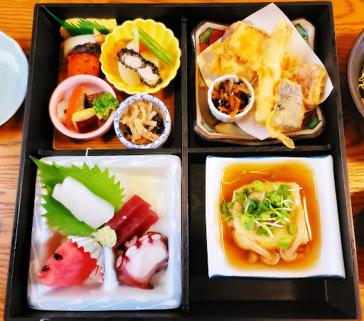 ・ランチ訪問なら、「松花堂弁当 ランチ(1,600円)」がとにかくお得です。 ・お寿司、汁物、サラダ、に加えて、お刺身や天婦羅をはじめとして小鉢物が沢山。こんなにも豊富な種類のお食事を頂けて、1,600円とはお値打ち過ぎます。そして、どれも安心感のある「THE和食」なお味。 ・法要などで利用したくなる美味しくてコスパの良いお弁当ですね。