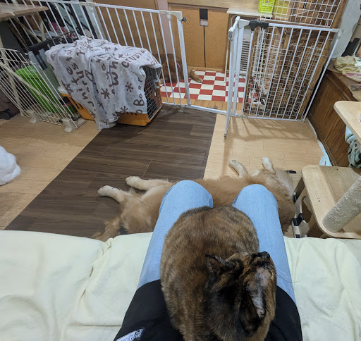 ふれあいは、猫ちゃんは寄ってきて触らせてくれるので、下手な猫カフェよりもよっぽど良かったです! ゴールデンの子がとても元気で興奮気味な可愛こだったのですが、遊びたくてのしかかってきたり飛びついたりするので、小さい子や力の弱い女性は注意した方がいいかな?と思いました。 力の強い大型犬が平気でしたら、抱きついたりして遊んであげるととても喜ぶので遊び甲斐があると思います。 もう1頭雑種の子がいるのですが、おやつをあげているときは良かったのですが、そのあとはやきもちを焼いているのか、ゴールデンの子が吠える子だったのでそれにイライラしていたのか、少し攻撃姿勢をみせました。 実際に噛まれたわけではなく噛みついてくるような仕草をしてきたので、小さい子や慣れてないかたは気をつけた方が良いかもしれません。 仕草自体は1度だけでしたが、その後唸るようなことが2〜3回ありました。 ただ、そのあと撫でさせてくれたりは普通にしてたので、慣れていれば平気なのかもしれません。たまたま不機嫌だったのかもしれませんね。