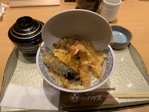 2人で「ハゲ天定食」を注文。 他の方もレビューされている通り、突然料理が運ばれてきました。 確かにネタはまきのに比べると2回り小さい(価格転嫁を最小限にという事と理解しています)。ただ、揚がった感じはとてもふっくら。壺で提供される白菜の漬物、赤だしもちょうどいい感じでした。 おかわりについては注文を取りに来た男性(厨房にいる方)から説明がありました。