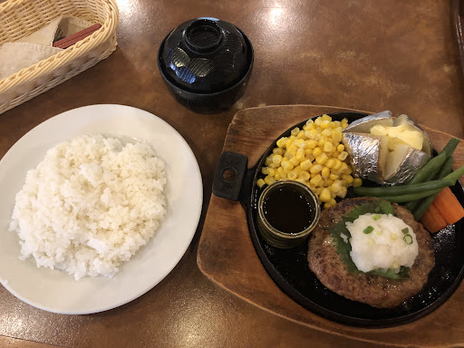 We enjoyed the beef hamburg lunch set meal for 1100yen. The portion was very generous with appetisers and salad. The large beef pattie was solid mince meat without breadcrumb or flour filler. It was served with sweet napolitan sauce but I would prefer mushroom or pepper sauce. Add 100yen for a cake completes the meal. I would give a perfect 10/10 score if not for frying oil smell coming from the kitchen to the dining area. I...