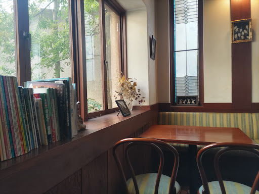 Read more他のクチコミにもありますが、この街中にあって異空間な場所でした。 シックでモダンな昭和な雰囲気のある店内、ムーミンの世界に居るような、クラシカルなスペースでした、 コーヒーも高価ですが美味しい!の一言、スペシャルブレンドが良かったですね。(オリジナルブレンドはマイルド、スペシャルブレンドはストロングだね) ケーキはチーズケーキと特製チーズケーキをチョイス、どちらもよろしぃですが自家製ではないのかな? ランチがなく、コーヒーとケーキ、サンドウィッチ、スコーンしかないので、ホントにコーヒーを味わうがためのカフェと言えるでしょう。 なので、ご近所ママさんのだべり声がうるさかったはぁ、異空間だからこそ、ゆったりとした気分でコーヒーを飲みたかったです。 暖炉が特徴的と言えますが、お店の方のお話からすると、やはり冬場が暖炉に火が入るので、その頃が情緒的なようです、クリスマスイルミネーションも大々的にやるそうなので、狙い目は12月かと思いますね。 満点5つ星にしたかったですが、だべり声で1つ減ですね。...