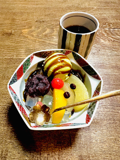 日曜日はデザートサービスがないので、おしるこもあんみつもお願いしましたが、どちらも美味しかったです。コーヒーも沢山のカップから選べて楽しいです...