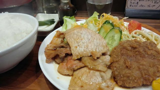 生姜焼き&メンチ定食¥900 いわゆる「こんなので良いんだよ」と言う味付け。 付け合わせのサラダも十分な量。 ご飯も大盛りにしてくれる。 午後3時までのランチ時には、コーヒー紅茶、ジュースの...