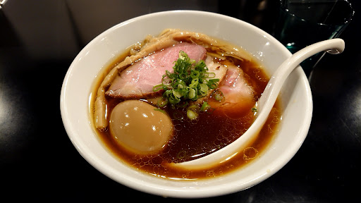 Read moreここ15年来、旨味があるのにクリアなスープでとろっとしたチャーシューのおいしい醤油ラーメン(^^♪)を方々に探し求めておりました。こちらのラーメンもちょっと前に写真で拝見してましたがスープは濃いめだけどクリアな感じ、味玉もつるりとテカッておいしそう、そしてチャーシューは…今流行りのレアチャーシューかぁ。。という印象。 多分おいしいんだろうけど、ハムっぽいレアチャーシューには興ざめな印象を持っているので、ちょっと足が向かなかったのですが、だいたい気になる店は行き尽くしてしまったので満を持しての初参戦です。 まず店構えにたじろぎ。。美容室ですか?!という印象。 実際に店内もオシャレな感じで女性だけで来店してるお客さんもいました。 さて、券売機で本命の特製中華そば(1000円💦)を注文!カウンターに座ってからもちょっと高いなぁと思いながらも「調査だから」と自分をなだめていたら目の前からラーメン登場!おおっ、写真で見たのと同じ、キレイだ!でも、味はどうなのよ??というわけでいよいよ実食☆