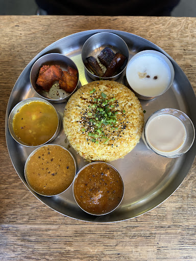 個性的なビリヤニの虜になりました 【ヒマラヤユキノシタ】 ★食べログ3.34 ♦営業時間 11時30分~15時00分、18時00分~22時00分 ♦定休日 月曜日 ♦最寄り駅 柏 以前ボンベイ(カレー屋さん)があった場所を通りかかると カワイイ黒猫の看板が掛かってていた。 「新しいカフェかな?」と思って近づいてみると なんとビリヤニ専門店じゃありませんか! 窓が開いていて開放的な雰囲気。 風通しがよく快適に過ごせそう。 店内に入ると白壁にアジアンチックな 木のテーブルとイスがあって 落ち着いた空間になっています。 ところどころにモダンなタイプのイスも配置してあり 店内のオシャレな雰囲気にテンションが上がります。 カウンター席も5席ほどあるので 一人でぷらっと入るのもいいですね。 ビリヤニは鶏肉、豚肉、牛肉、野菜の全4種。 この中から1種類選びます。 カレーもバターチキンカレー、豚肉と玉ねぎのカレー、 牛鶏ひき肉と黒コショウのカレー、ホウレン草とバニール(チーズ) の中から2種類選べて、なんとチキンティッカも付いてくる! カレーやチキンティッカがセットになっているのは珍しい。 おまけにサービスでチャイもついてくる! 嬉しい!! ホットとアイスが選べると言われたので、 暑いのでアイスでお願いしました。 【注文メニュー】 ♦鶏肉のビリヤニ 1000円 南インドのミールスみたい! ビリヤニとカレーの他に、ラッサム、 ナスのアチャール、ライタもついてる! ※『ミールス』とは、ぱらぱらとした米を主食とした、 複数のカレーや副菜を伴った定食のことです。 ビリヤニのボリュームもすごい! 小盛、普通、大盛が選べるので 普通でお願いしたんですけど、、 みっちりつまった米が皿の中央で こんもりと盛り上がってる!ライスの丘や!! ビリヤニは通常インドの高級米「バスマティ」を使用しますが こちらは関東産コシヒカリを使用。 まったくパラパラしていません。 鶏肉もしっかり炊き上がっていて ジューシーでよい感じです。 カレー2種はバターチキン、 牛鶏ひき肉と黒胡椒のカレーを選択。 バターチキンは濃厚でコクがあって くせになる甘さです。 牛鶏ひき肉と黒胡椒のカレーは 肉の旨味にスパイスがしっかりと絡み 黒胡椒がピリリとしたアクセントを加えています。 チキンティッカは辛みを追加する チリチャトニをつけていただきました。 ん~辛いけどくせになる! しっかり香辛料がしみこんだチキンに かなり合います! ラッサムはぜんぜん酸っぱくないです。 個人的には酸っぱいのが好きなのですが、 優しい味のスープなので カレーの合間のお口直しにちょうどよいです。 一口ずつ食べていったらあとは いろんなカレーや副菜をビリヤニに混ぜて食べます。 これがオススメの食べ方なんだとか。 チャイもスパイスの味がしっかりしました。 本格的な味わいです。 ライタ(ヨーグルト)は想像以上に 甘くてびっくりしました。 本当、甘かったり辛かったり、 いろんな味が楽しめますね。 【総評】 カレーや副菜もいっしょに楽しめるビリヤニ専門店。 オシャレで開放的な空間なので ぜひデートや女子会ランチなので活用してほしい。 スパイスの複雑な味わいにプラスして 和のテイストを取り入れたオリジナリティが面白い。 他ではちょっと味わえない個性的なビリヤニ。 ぜひ一度味わってほしい逸品である。 #ヒマラヤユキノシタ #ビリヤニ #カレー #ボンベイ系 #柏エール飯 #グルメ #グルメ好きと繋がりたい #グルメ部 #食べるの好きな人と繋がりたい #食べログ #食べスタグラム #美味しいもの好きな人と繋がりたい #人気 #グルメ巡り #インスタグルメ #インスタフード #美味しいお店 #食レポ...