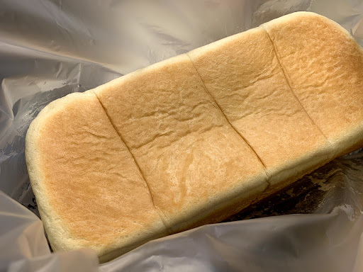 高級食パンを購入しました。 柏は最近生食パン専門店がひしめき合っていて、競争率も高そうだなぁと思いつつ、ずっと気になっていたパン屋さんだったのでお昼ご飯にと思い購入。 ちなみに高級食パンは月水金の週3日販売です。 10時半過ぎに伺ったところ、焼きたてホヤホヤだったので「カット出来ないので1本での販売になりますが…」と伝えられ快諾。 元々1本(2斤の大きさでしょうか)買う予定でしたので、焼き立てという事にテンションが上がりつつ、レジのお母様の言う通りに形を崩さないように丁寧に持ち帰り帰宅。 キッチンで適度に冷まし、カットして当日は何も付けず&焼かず、そのままいただきました。
