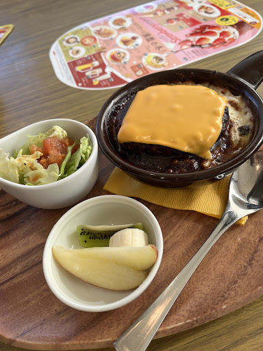 Read more5月20日に訪問。 こちらの店舗は初めて利用しました。 駐車場は1台の区画が狭めで店舗はいかにもココスといった造りです。 ビーフシチューの包み焼きハンバーグとチーズと舞茸の包み焼きハンバーグをいただきましたが、安定のおいしさです。 注文はタッチパネルですので水と紙おしぼりはドリンクバーに置いてありセルフとなります。 つまようじと紙ナプキンはテーブルに置いてあって便利でした。 久しぶりに食して気になったのは、付け合わせのポテトのガーリックが強いな(以前は普通のバターだったような)と感じたことと、配膳された際にポテトをコロっと倒されて木製のトレーにバターが流れてしまっていたこと。 店員さんはスルーしていましたね。 土曜の昼食時でしたが、比較的空いていた印象です。 客層は年配のグループと家族連れが多く、年配グループの話...
