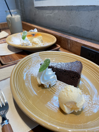 今回は雨予想でどんより曇り空の日曜日14時入店だった為、待ちなしで店内席確保でき、ケーキとカフェラテをオーダー。 肝心の味はというと、手前はガトーショコラで見た目通りの美味しさ。が、予想に反して写真奥の「おいものチーズケーキ」が濃厚でチーズと芋の良いところどりの激甘美で一口目でリピート判定◎"ちゃんと"カフェラテもコクがあり美味しいですよ^^