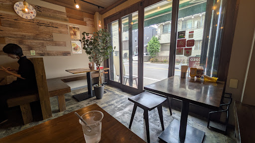 テーブル5席のこじんまりしたお店です。 店内にトイレはなく、ビルの2階トイレを利用する形になります。 駐車場はありませんので車で来店する場合は、近くの有料パーキングを利用するしかありません。私はメガロスの駐車場1時間220円で利用しました🚙