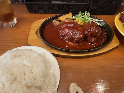 肉肉ハンバーグは本当に肉肉しくて旨い。チト塩分高めだが、ライス大盛りにして正解。めっちゃご飯がすすむ。コロッケもうまい。 一心不乱に食べ進めて完食。