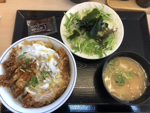 Read more平日の昼過ぎに来店しました。 お店の中のお客様は半分以下でした。 空いてるカウンターに座りメニューから注文するものをチョイスしていると店員が来て熱いのか冷たいのどちらがいいですか?と聞かれたが、何を聞かれているかが分からなかったので、は!と言ったらお茶は熱いのと冷たいのどちらですか?と言われたので熱いのをお願いしました。主語を言わなかったので何を聞かれているいるのかが分からなかった。常連なら分かるけど私みたいに初めてのお客様は分かりませんよ。 カツ丼(梅)と野菜サラダを注文したが店員はカツ丼を復唱したのでサラダ入ってますか?と聞くと、はいと言った。いや!俺には注文の復唱にはサラダはなかったぞ。(お客様サービスが低いなー) その後、再度メニューを眺めていたらとん汁+野菜サラダでAセットで¥264であったので野菜サラダをAセットに変更して貰った。 しばらくすると注文した品が着丼しました。 野菜サラダには私の好きな青じそオイルが着いていた。嬉しい。 豚汁も美味しい。カツ丼もそれなりに美味しかった。カツは1.5cm程度に切られており食べやすかった。 ただ、ご飯の量がちょっと少なかった。 食べ終わって会計すると合計が¥1023だった。あれ!注文した時の暗算では¥1000未満のはずだったかなぜた。と思いながらPayPayで精算を済ませ自宅に帰ってレシートを見たら何とカツ丼がカツ丼(竹)になってた。だから¥1000オーバーになったんだ。 品物が席に到着した時にも注文リストを見たが、カツ丼とだけ記載されてたのでまさか竹を選んでるとは思っても見なかったし、注文時に店員もカツ丼とだけ言って竹であるとも言わなかった。 このお店はお客...