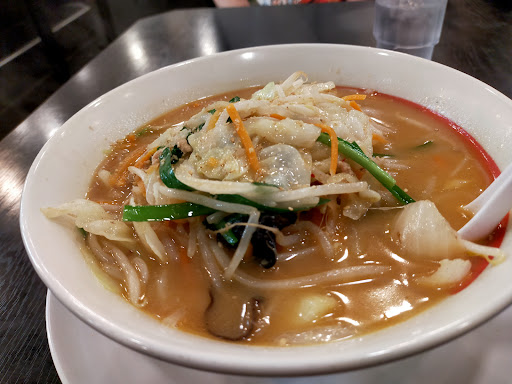 【味噌野菜たんめん730円】たっぷり野菜のまろやかな味噌スープで安定の美味しさ。店内のポスターも大きくて幸楽苑のイチオシかも。