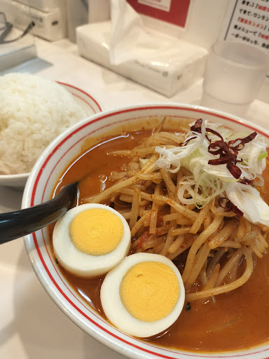 味噌卵麺 標準8辛+野菜大盛り(有料) ★★★☆☆ 3回目の蒙古タンメン中本 標準8辛と北極ラーメン9辛に次ぐ辛さ上位 北極ラーメンに煮卵をトッピングしただけと思ってたら別物!北極は食後にスープが残らないくらいでした。大量の唐辛子でスープがドロドロだった為、食後のスープが残らないのに対し、味噌卵麺はサラサラなんです。