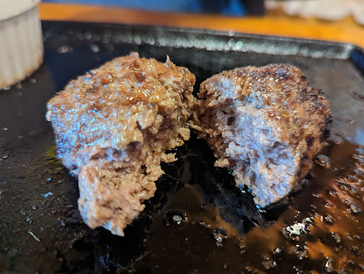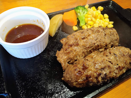 Food was ok. Nothing special. Some things (particularly on the side menu) are expensive for what you get. The potato with tomato and cheese is expensive- 800 yen for what is basically half a medium sized potato chopped up with cheese sprinkled on it. 400 yen would've been a better price, or just more generous with the potato amount. It tasted ok, just felt ripped off. Soup that came with the lunch set was amazing. Tofu based salad was ok, nothing special. Beef patty was ok. Needed seasoning, but salt and pepper are on the table. Sets all come with rice (standard in Japan, but there are no other options, hence my "Japanized" comment). Chicken was good, a little overcooked... Probably because it's served on a hot/iron plate. Don't get the obsession with restaurants using these plates - steaks need to rest and those plates don't allow that to happen. And everything else just ends up overcooked/burned. Small amount of cut steak was good. Risked being overcooked because of the iron hot plate but I managed to move it off so that didn't happen. Let it rest a little bit and then found it to have quite nice flavour.