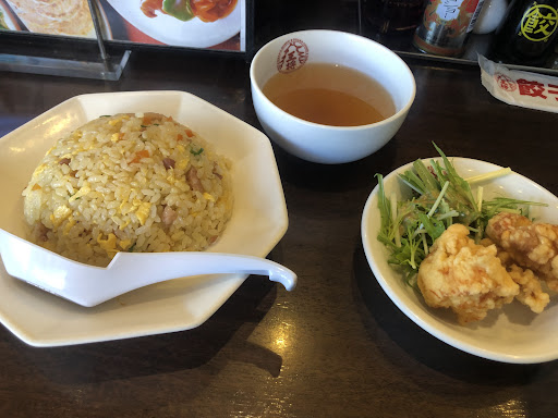 Read more大阪王将に初めて入りました。 この店にはカウンター席が5席、4人席が3つあり、お好きな席にどうぞと声をかけられた。 お客さんは1名のみでかつ食事中のため店員は暇そうにしてました。 餃子&チャーハンセット(¥947)を注文しました。(唐揚げが着いてたので) カウンターからは厨房が丸見えなので見てると、注文が入ると餃子を焼き始めたがチャーハンは炒めてる風が全然しない。 商品を待ってる途中に突然大きなベルが鳴ったが店員は音に無関心なので何時ものベルのようです。(ビックリです) この音のあとだと思うがチャーハンを炒め始めた。(セットなので一緒に出すためか?) しばらくすると、チャーハンとスープと唐揚げがテーブルへ運ばれた。 まずは、スープを頂くとちょっと変わった味です。チャーハンはパラパラですが味は普通です。 唐揚げの隣にある野菜に掛かってるドレッシングが好きな味でした。 しばらくすると、餃子が到着。 醤油+酢+ラー油(瓶入り)を小皿に作り、餃子を頂く。餃子は特別なとこはなく、普通の感じ。 会計時に初めての出来事が、、、 代金を出すと店員がレシート必要ですか?と問われた。 面...