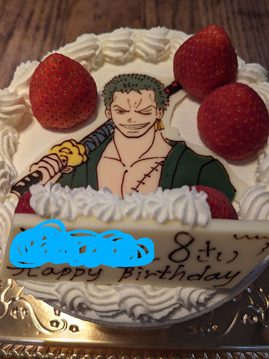 以前からお店のことは知っていましたが、キャラクターケーキ、完成度半端なく高いです。 家族があるキャラを溺愛しているので、バースデーケーキにキャラクターケーキを注文しました。 電話注文のみなので、キャラは口頭で伝えただけです。直接店舗まで画像を持って行きづらいので、メールで送ることを申し出ましたが、お店で調べるとのことでした。 お店のホームページからキャラクターはどんとお顔だけのイメージでしたが、出来上がったケーキはキャラクターのキメポーズ。あまりの完成度にワーキャー言ってお店の方を引かせてしまいました。すみません、、 しかも、、、お店の入り口に黒板でお誕生日祝ってくれ...