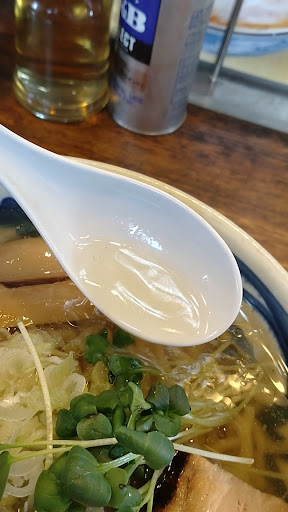 Read more国道16号線、外回り、野田から流山に入って間もなく、いつも駐車場が満車のラーメン屋さんがありまして、ずーっと気になっていたので入ってみました わりと年期の入った建物ですが、しっかりとした古民家風の佇まい 日本建築の純朴な美しさを感じます 外まで列ができていました 15分ほどで入店 野田、流山と言えば、醤油や味醂など、関東のの食文化の基礎を支えてきた地域、メニューもしっかり魚介醤油を柱とした構成です 初めての方におすすめなのが白醤油ラーメンという事です だがしかし 今朝目覚めたときに、 つけ麺を食べなさい! と神が告げてくださった関係で、白醤油のつけ麺大盛りを選びました 麺は細麺と、ピロピロの太麺が選べます 今回は細麺でお願いしました 程なくして着丼!! つけ汁が、本当に白い! レンゲですくい、一口すすると、とにかく熱々!さらにその上の油が熱気を逃さない蓋の役割をしていて冷めません そして、美味い!! ほんのりとした酸味を感じた後に、口の中に広がる魚介の甘み、その甘みを醤油がカンナの様に削り取ってぼやけさせず旨味だけが口に残る 目を閉じれば、熟練の大工さんの様なモノ作りの精神が感じられる、そんな、あまたの努力を感じられるスーブです そして、そこにダイブさせる麺は、自己主張しすぎず、スーブの旨味と食感のバランスがちょうどよい 細麺にして正解でした さらに、途中からレモン汁を絞り入れると、キレが増してクリアーな清々しさと魚介の甘みが同居して、いくらでも啜れてしまう美味しさに、舌鼓です 締めは、スープ割りを頂いて、一滴も残さず完食 他には無い美味しさ、幾重にも磨き上げ突き詰めてきた旨味を感じます このお店の全ラーメンを制覇してみたい!そんな気持ちになりました また来ます!! ごちそう...
