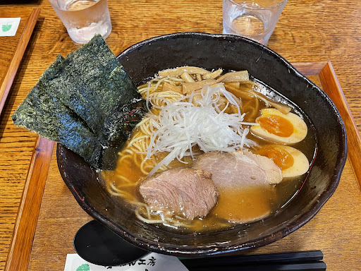 Read more忖度なしに書くよ 八丁味噌ラーメンとコッテリラーメンを食べました 写真はコッテリラーメン メニューには麺量の記載があったけれど、グラム数では麺の量がイメージしにくかった。一般的な並盛りで〇〇グラムですの表現が欲しかった 好みの味ではなかったけど、魚の出汁系のラーメンが好きな人には良い感じ、整った味は作り込まれている雰囲気が漂ってました 店員さんのサービスは良い印象だし、店の雰囲気もラーメン屋とは違うアメリカ風という独特の作りにジャズを流しているというラーメン屋さんとは別の感じが適度に良かった 車で行っても駐車場はしっかりあるので、写真を参考に下調べしてからいくと良いし、店の前にも停められます。私道なので駐禁とられませんとの事、あ...