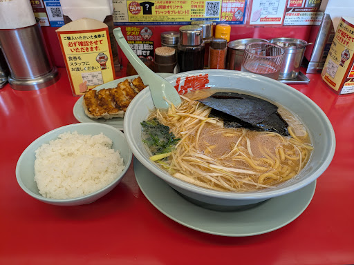 24時間営業で朝ラーメン、味噌ラーメンを食べました。 朝ラーメンはトンコツラーメンで細麺ストレートです。 チャーシュー、海苔、梅干し果肉、ネギ沢山乗っています。 味噌ラーメンはチャーシュー、ほうれん草、ネギ、海苔が乗ってました。 味噌ラーメンは中太でスープに良く絡みます。1枚目が味噌ラーメンです。2枚目が朝ラーメンです。 どちらもとても美味しかったです。 券売機(現金、電子決済、カード払いできます)で食券を買い席に着くと店員さんが来てくれます。 その時に麺のかたさ、油の量、味の濃さを変更したい時は言うとしてくれます。 例えば油少なめ、かためと伝えるとスープの味は普通であとは言ったようにしてくれます。 替え玉は値上がりし半玉100円、1玉150円で現金払いで注文できます。 替え玉も麺のかたさを選べます。 全て普通でよい場合は何も言わなくてよいです。 朝ラー普通盛りは2025年4月時点で550円です。このご時世、値上げは仕方ないですね。それでも安いと思います。 トッピングも有料で色々あります。 すりおろしニンニクはテーブルにあるので好みで無料で入れられます。 いつも店員さんは感じがよく美味しいです。 トンコツなのでどうしても仕方無いですが店内がちょっとトンコツのかおりがキツく感じます。 朝ラーはポイントチケットが出ませんが他のメニューは券売機からポイントチケットが出て、5枚貯まると餃子一人前が無料になります。10枚で醤油ラーメン、味噌ラーメン、塩だったかな?が一杯無料になります。他にも枚数に応じて何かもらえたりします。店内広告等に書いてあります。 追記・よく朝ラーを二人で食べに行きますが一緒に行く人が麺固め、私は麺、柔らかめと頼むと私の麺は明らかに固めになってることが多々あります。 空いている時間に行ってるので注文通りの麺にして欲しいです。なので星を1...